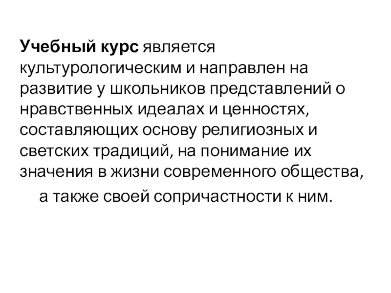 Слайд 4Учебный курс является культурологическим и направлен на развитие у школьников представлений