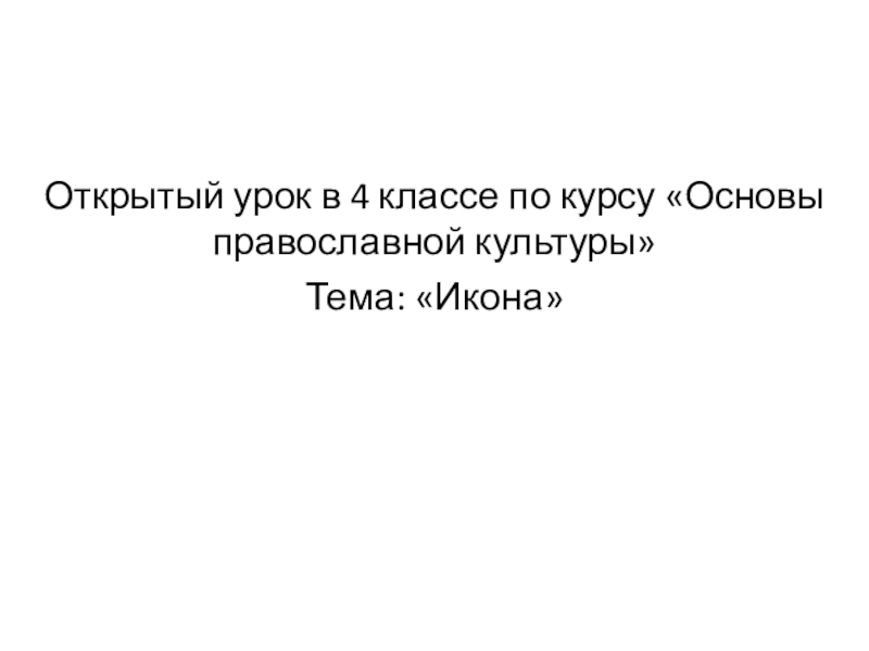 Открытый урок в 4 классе по курсу «Основы православной культуры»Тема: «Икона»