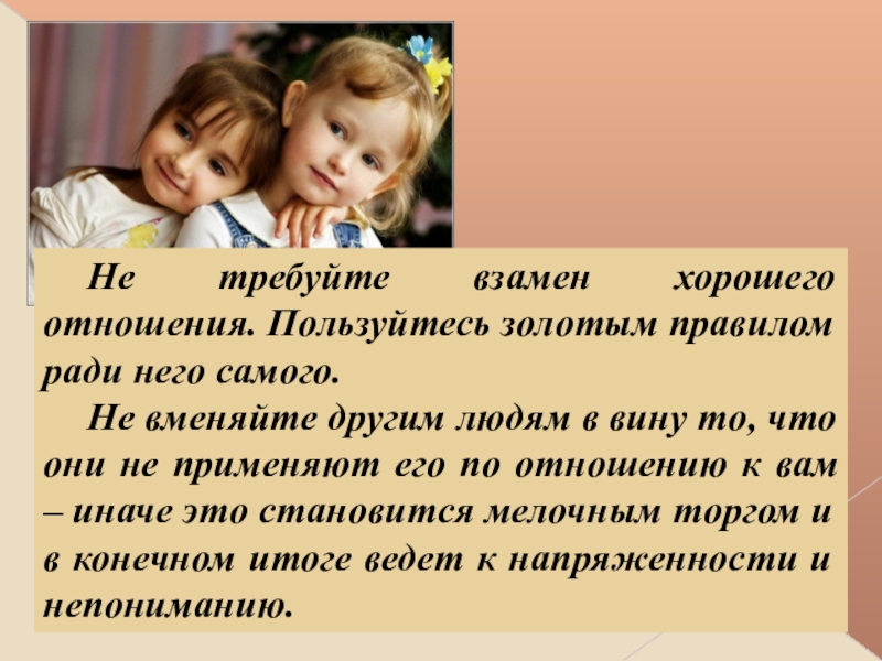 Золотое правило нравственности - способ правильного выбора поступка на основе доброго отношения к другому человеку