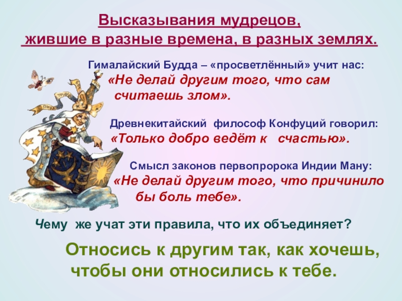 Древнекитайский философ Конфуций говорил: «Только добро ведёт к счастью».