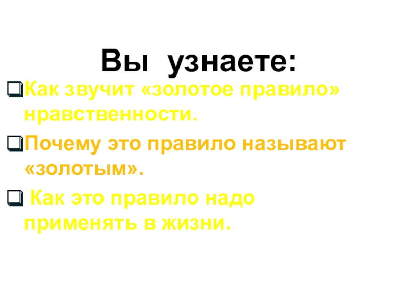 Вы узнаете:Как звучит «золотое правило» нравственности.Почему это правило называют «золотым». Как это правило надо применять в жизни.