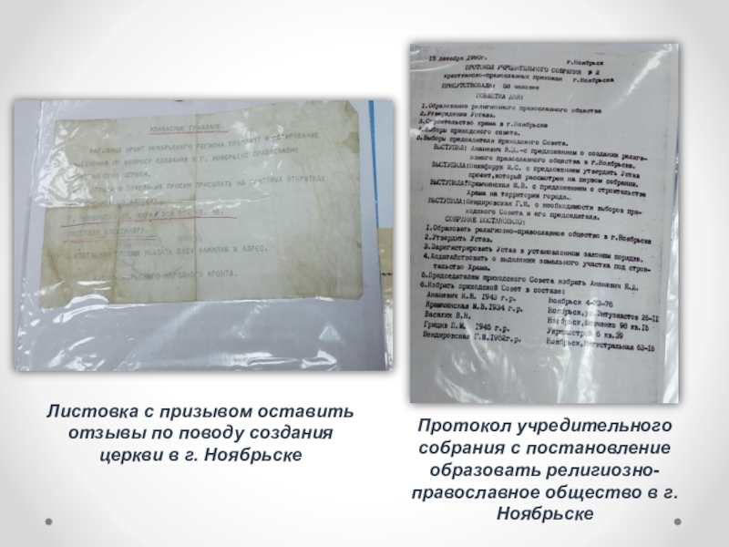 Протокол учредительного собрания с постановление образовать религиозно-православное общество в г.Ноябрьске