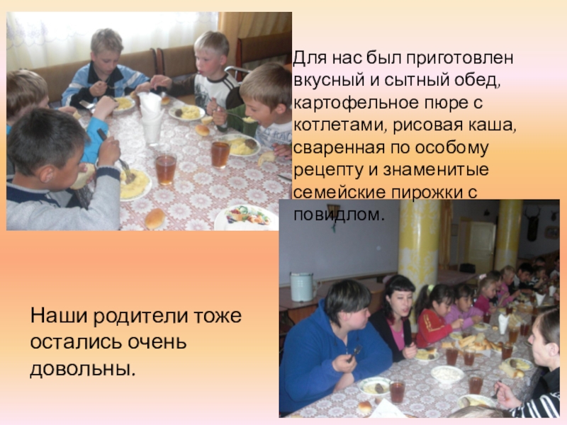 Слайд 25Для нас был приготовлен вкусный и сытный обед, картофельное пюре с