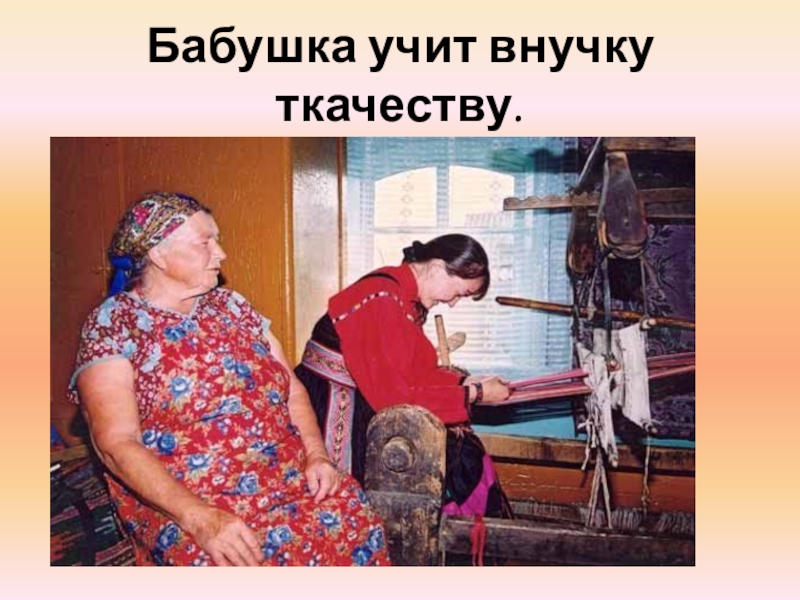 Слайд 8Среди домашних ремёсел особое место занимали прядение и ткачество, которые были