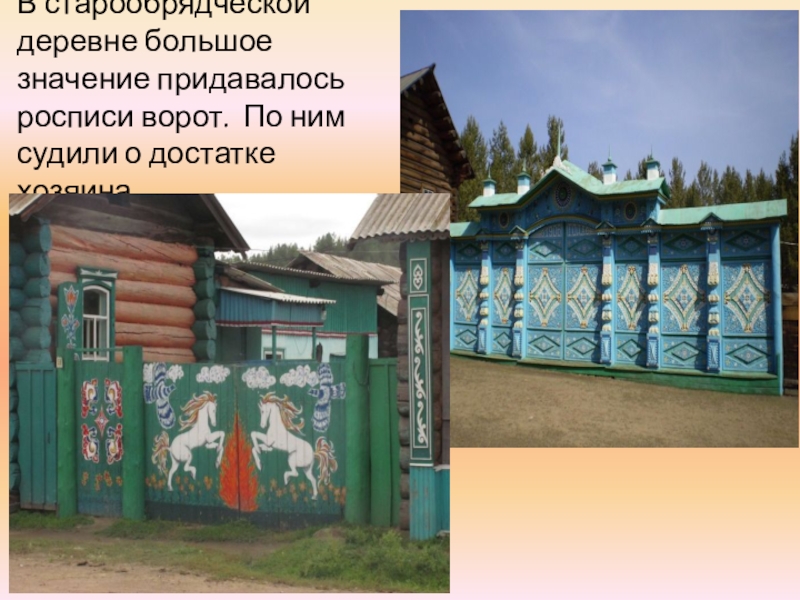 Слайд 17В старообрядческой деревне большое значение придавалось росписи ворот. По ним судили