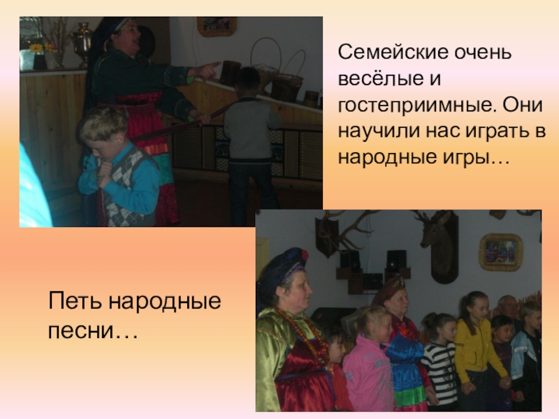 Слайд 24Семейские очень весёлые и гостеприимные. Они научили нас играть в народные