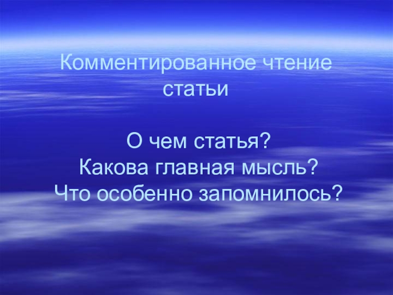 Слайд 11 Комментированное чтение статьи О чем статья? Какова главная мысль? Что особенно