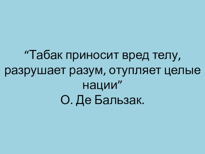 Слайд 3“Табак приносит вред телу, разрушает разум, отупляет целые нации”