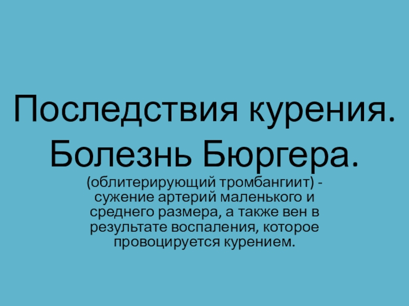 Слайд 13Последствия курения. Болезнь Бюргера.
