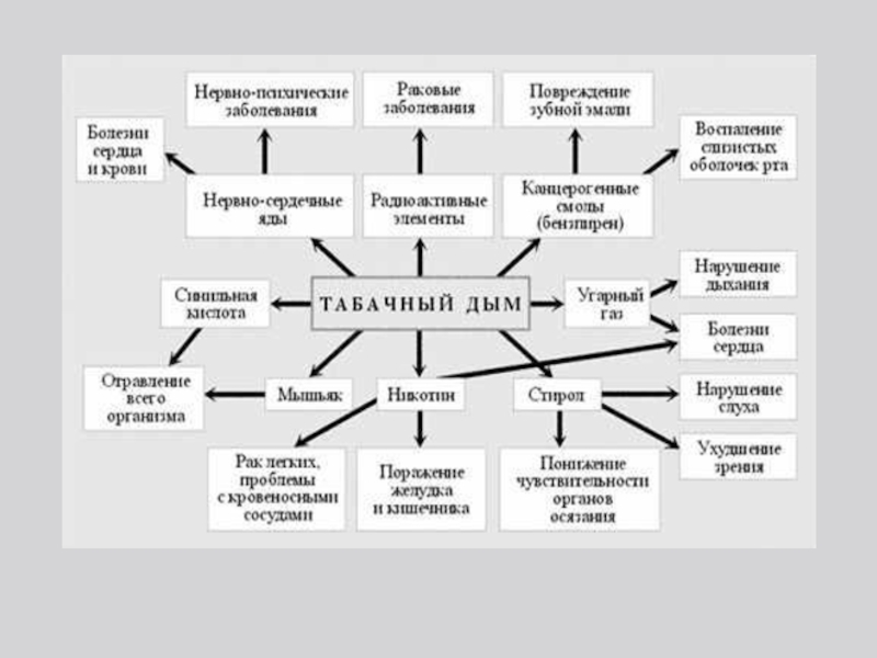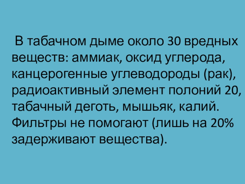 В табачном дыме около 30 вредных веществ: аммиак, оксид