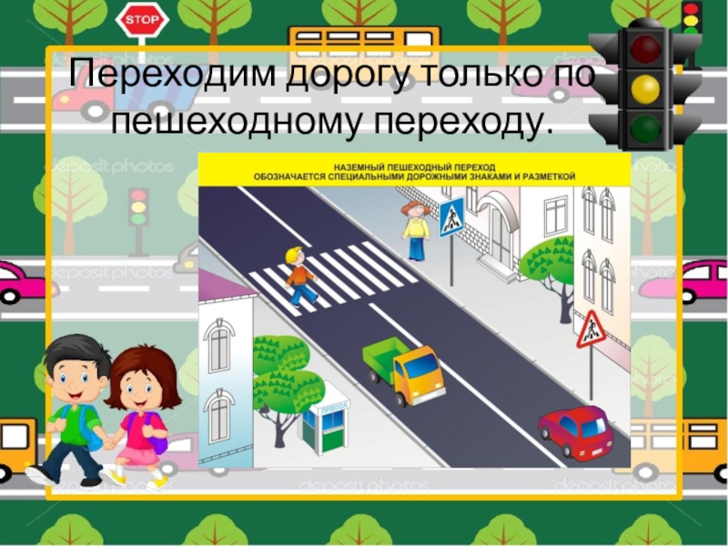 Слайд 14Переходим дорогу только по пешеходному переходу.
