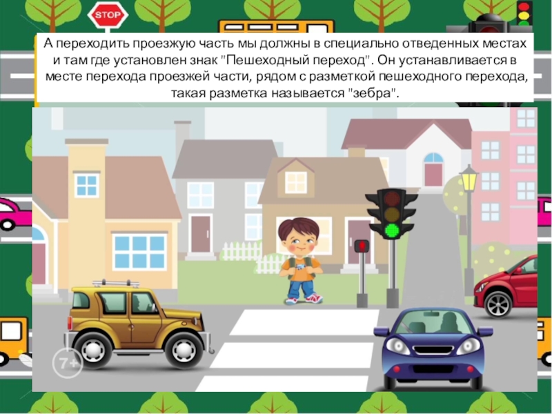 Слайд 6А переходить проезжую часть мы должны в специально отведенных местах и