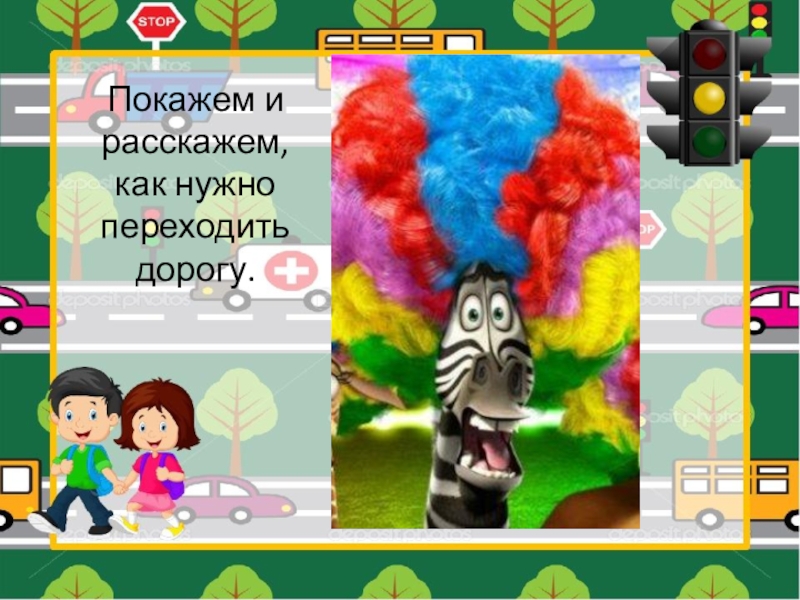 Слайд 3Покажем и расскажем, как нужно переходить дорогу.