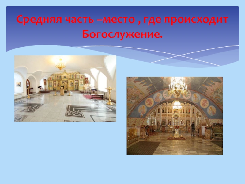 Слайд 20Средняя часть –место , где происходит Богослужение.