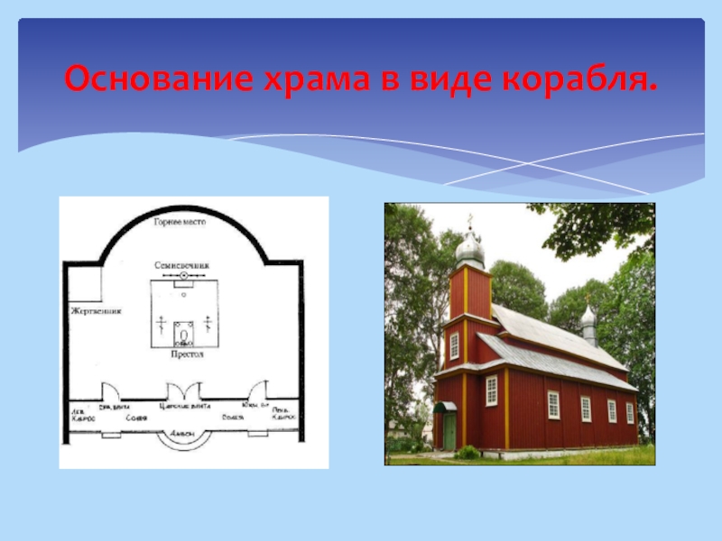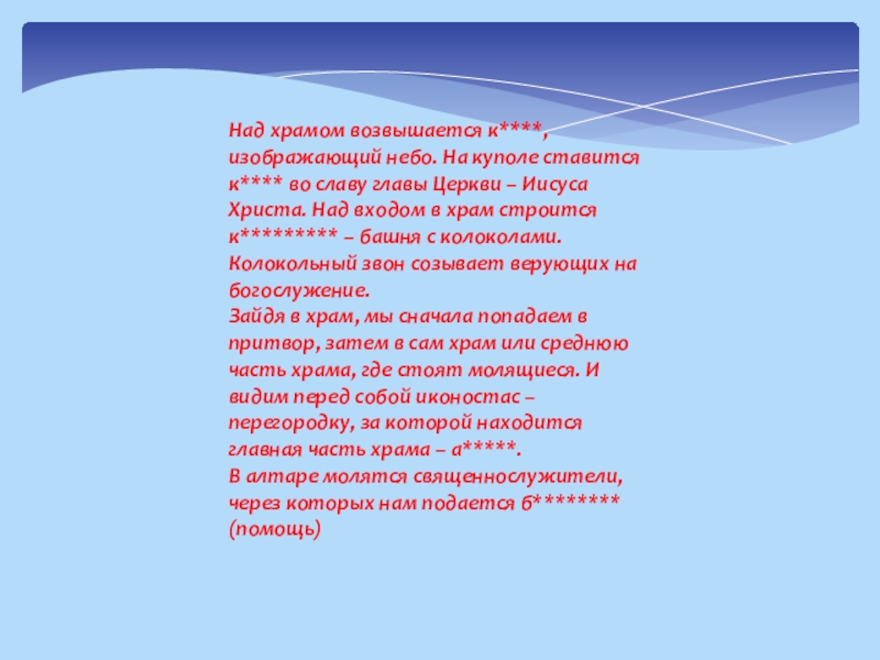 Слайд 26Над храмом возвышается к****, изображающий небо. На куполе ставится к**** во