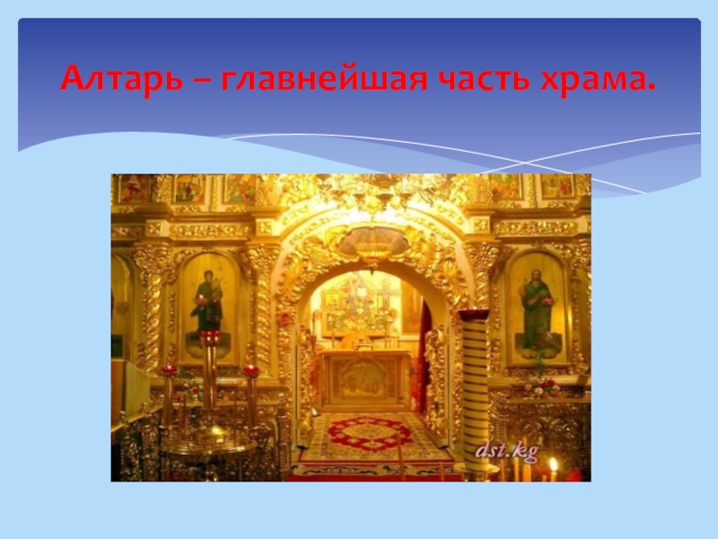 Зайдя в храм, мы сначала попадаем в притвор, затем в сам храм или среднюю часть храма, где стоят молящиеся. И видим перед собой иконостас – перегородку, за которой находится главная часть храма – а*****.
