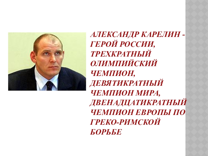 Слайд 6Александр Карелин - Герой России, трехкратный олимпийский чемпион, девятикратный чемпион мира,