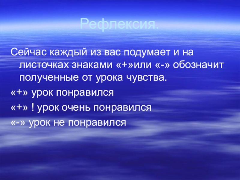 Сейчас каждый из вас подумает и на листочках знаками «+»или «-»
