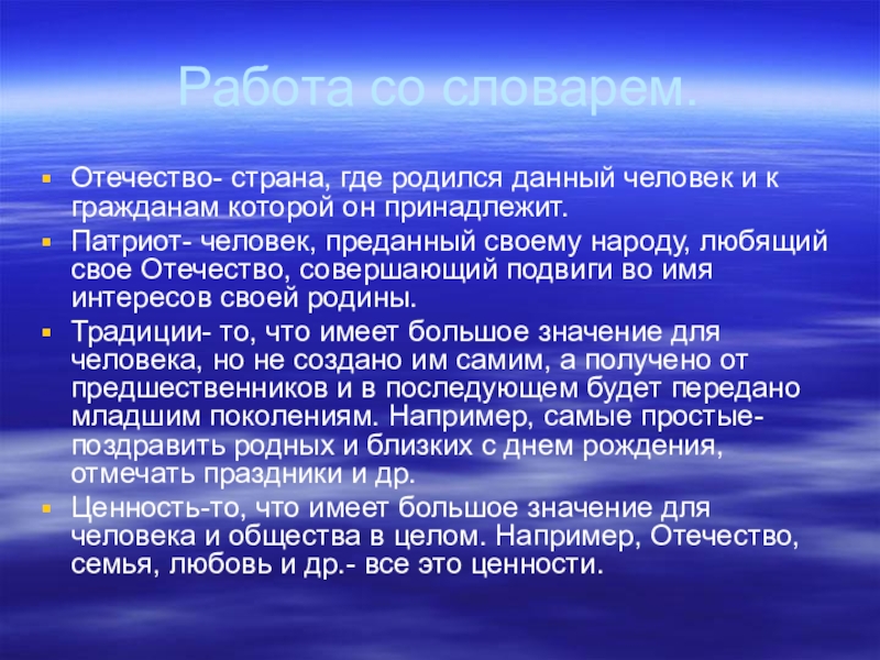 Патриот- человек, преданный своему народу, любящий свое Отечество, совершающий подвиги во имя интересов своей родины.