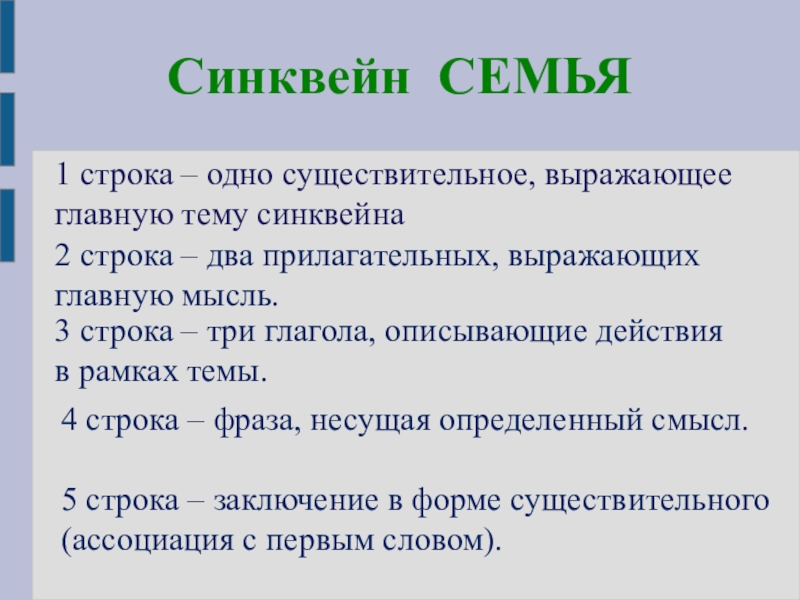 5 строка – заключение в форме существительного (ассоциация с первым словом).