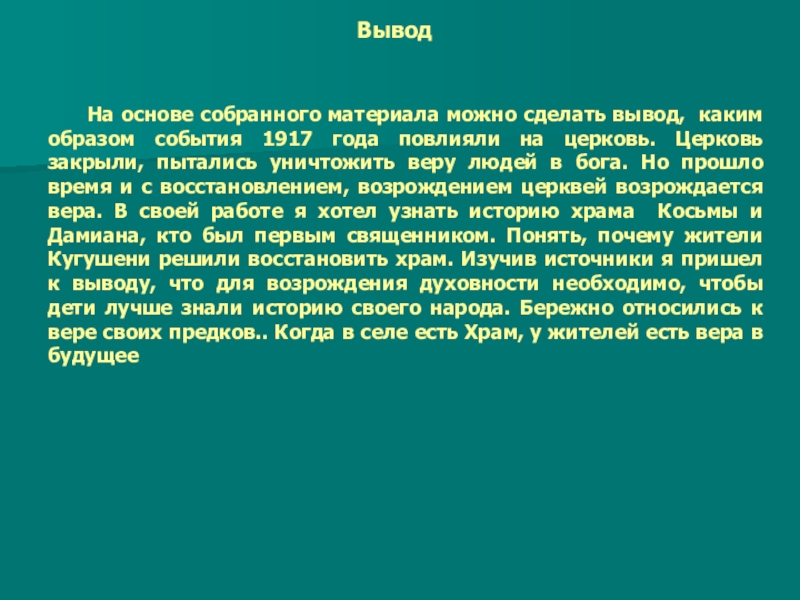 Цель исследовательской работы – собрать и изучить материал о прошлом церкви Косьмы и Дамиана