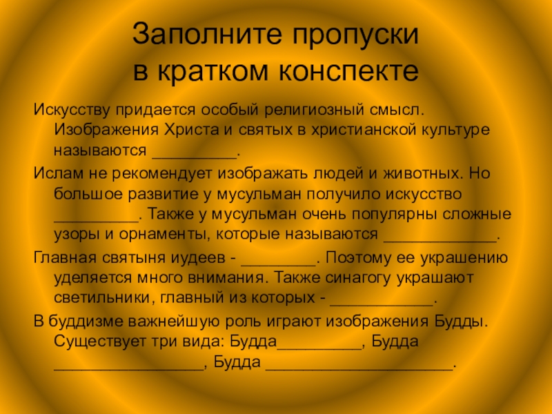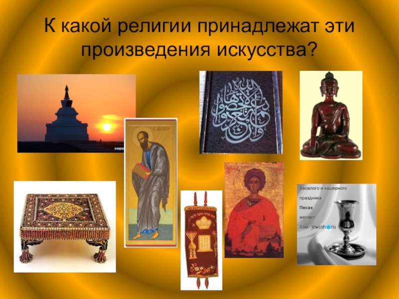 Слайд 38К какой религии принадлежат эти произведения искусства?