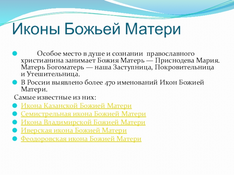 и сознании православного христианина занимает Божия Матерь — Приснодева Мария. Матерь Богоматерь — наша Заступница, Покровительница и Утешительница.
