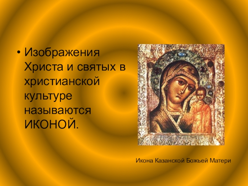 Слайд 8Изображения Христа и святых в христианской культуре называются ИКОНОЙ.
