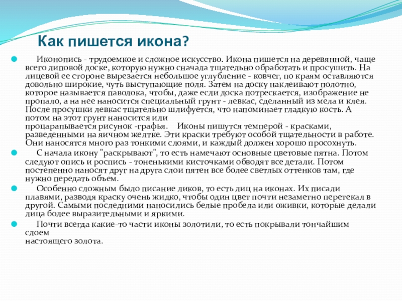 Иконопись - трудоемкое и сложное искусство. Икона пишется