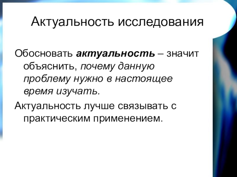 Обосновать актуальность – значит объяснить, почему данную проблему нужно в