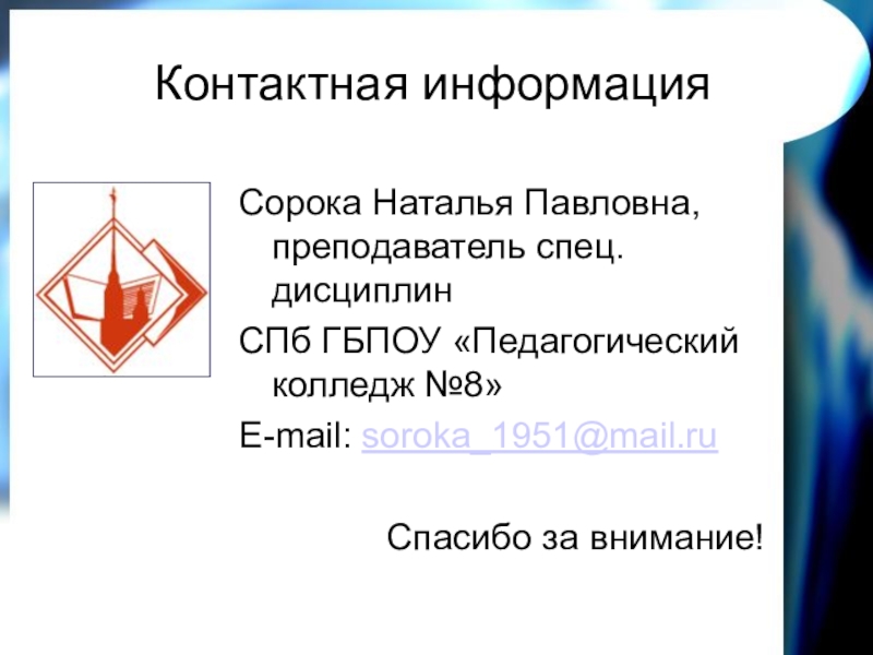 Сорока Наталья Павловна, преподаватель спец.дисциплин