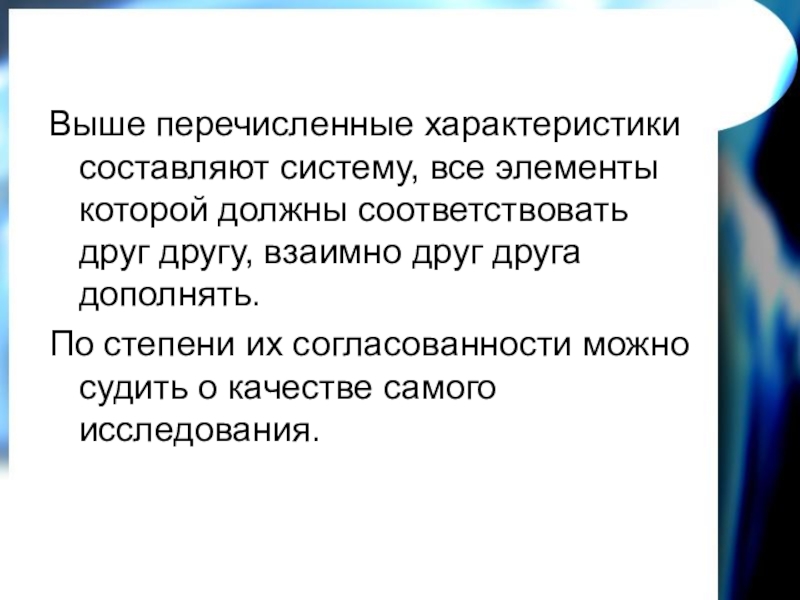 Слайд 19Выше перечисленные характеристики составляют систему, все элементы которой должны соответствовать друг
