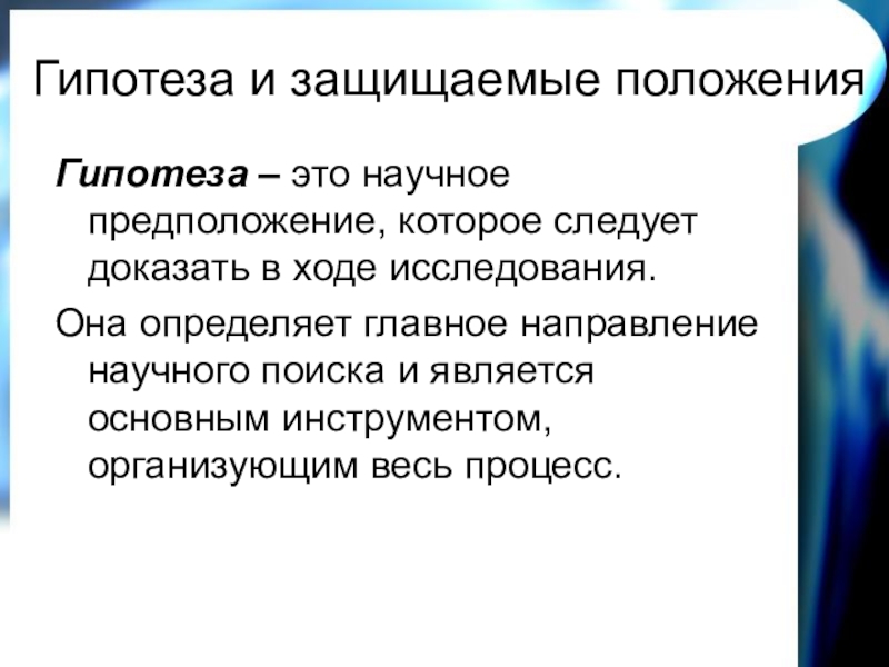 Она определяет главное направление научного поиска и является основным инструментом, организующим весь процесс.