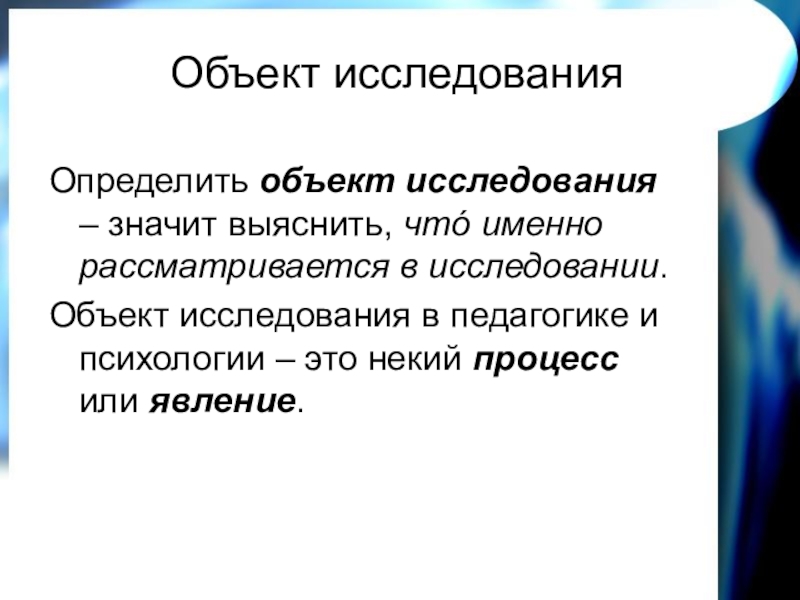 Определить объект исследования – значит выяснить, чтó именно рассматривается в