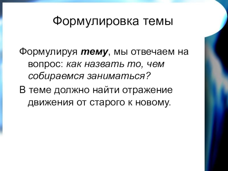 Формулируя тему, мы отвечаем на вопрос: как назвать то, чем