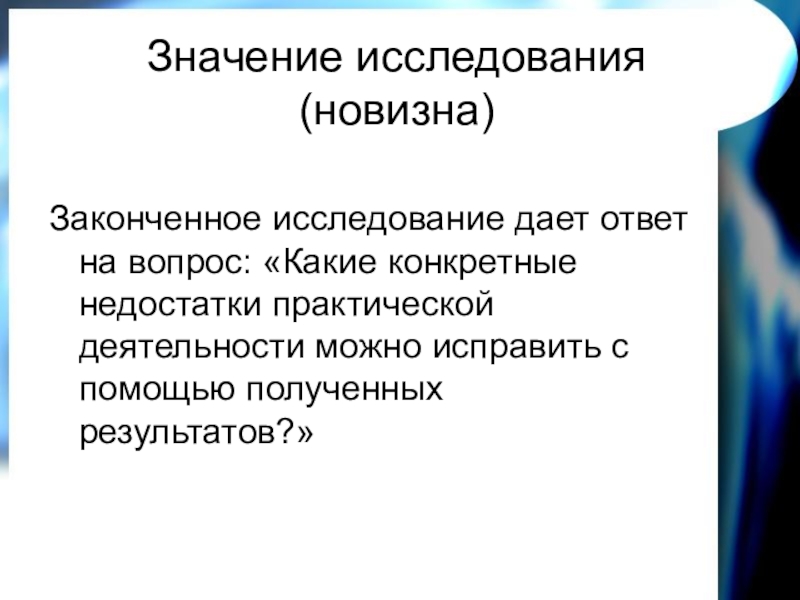Законченное исследование дает ответ на вопрос: «Какие конкретные недостатки