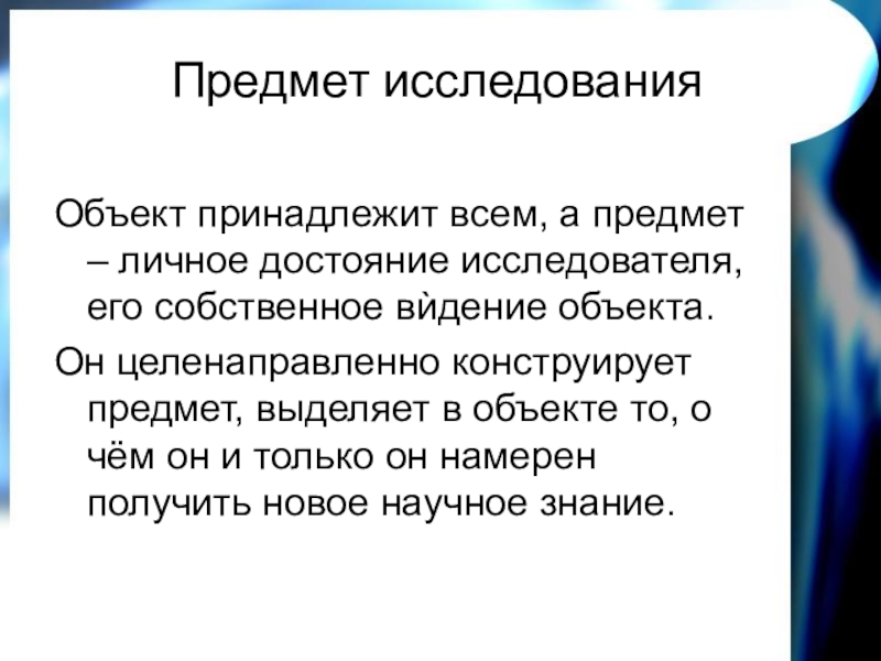 Объект принадлежит всем, а предмет – личное достояние исследователя, его