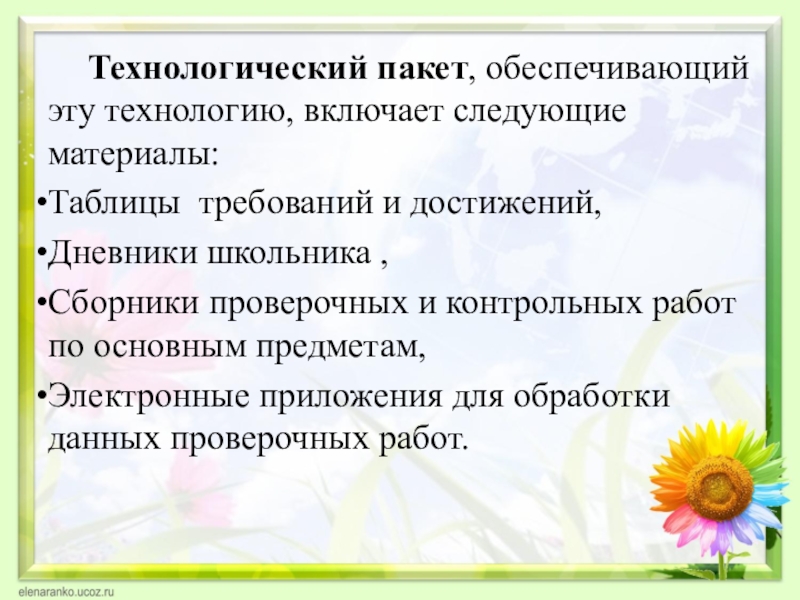 Слайд 19 Технологический пакет, обеспечивающий эту технологию, включает следующие материалы: