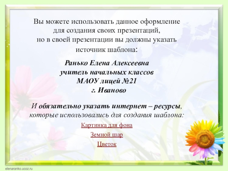 своей презентации вы должны указать