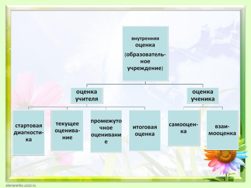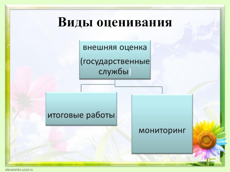 педагогом или общеобразовательным учреждением. Внешняя оценка осуществляется как в форме мониторинговых исследований, так и в форме итоговых проверочных работ.