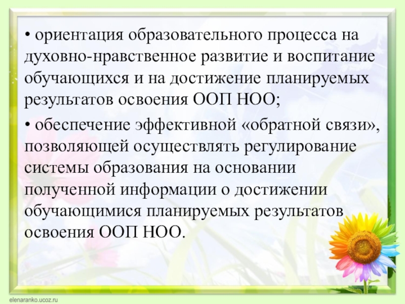Слайд 9• ориентация образовательного процесса на духовно-нравственное развитие и воспитание обучающихся и