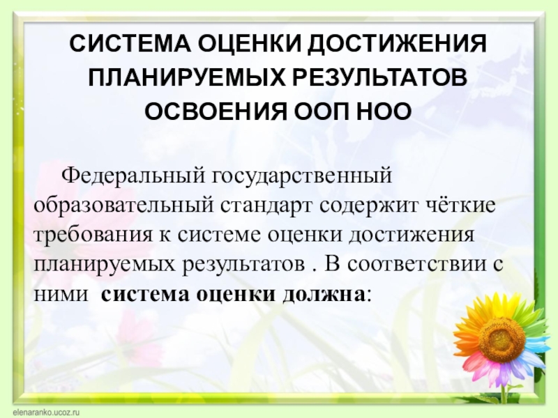 Слайд 2СИСТЕМА ОЦЕНКИ ДОСТИЖЕНИЯ ПЛАНИРУЕМЫХ РЕЗУЛЬТАТОВ ОСВОЕНИЯ ООП НОО
