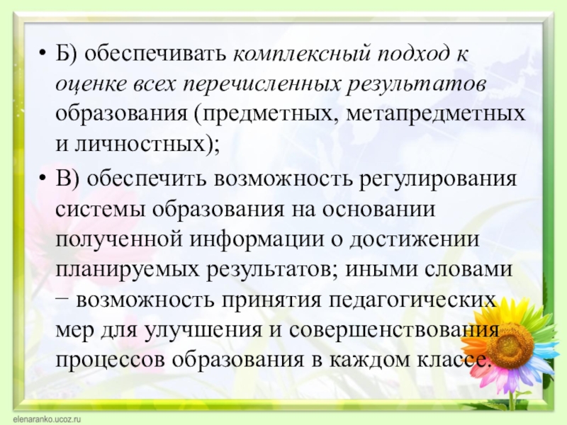 Слайд 4Б) обеспечивать комплексный подход к оценке всех перечисленных результатов образования (предметных,