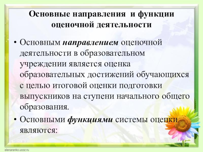 Слайд 8Основные направления и функции оценочной деятельности