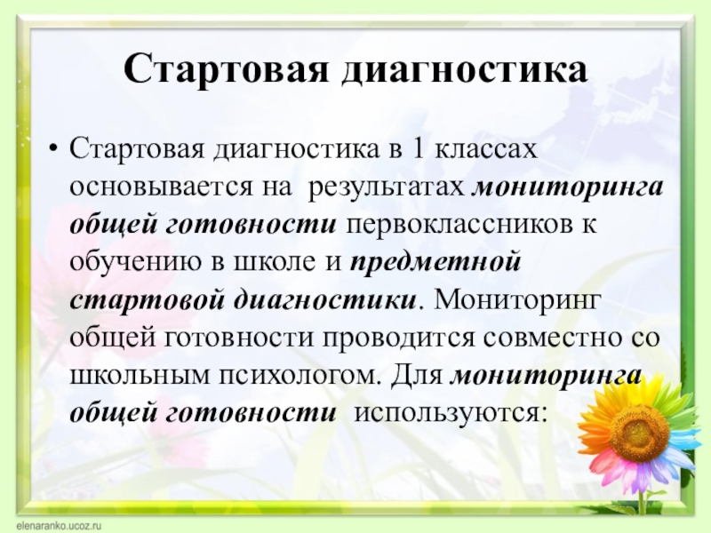 Стартовая диагностика в 1 классах основывается на результатах мониторинга общей