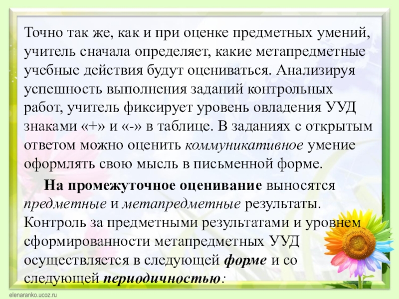 Слайд 29Точно так же, как и при оценке предметных умений, учитель сначала