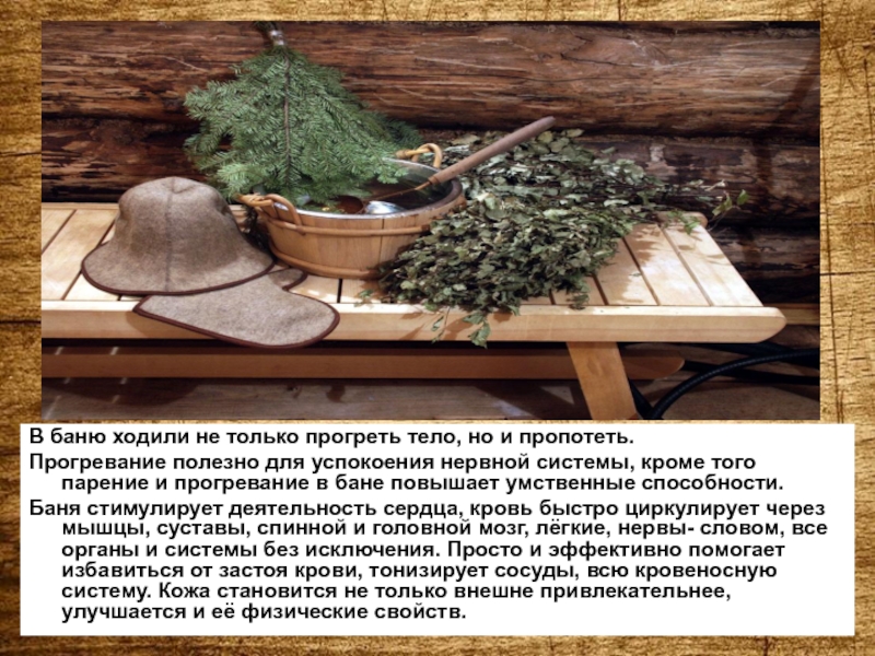 Слайд 7В баню ходили не только прогреть тело, но и пропотеть.