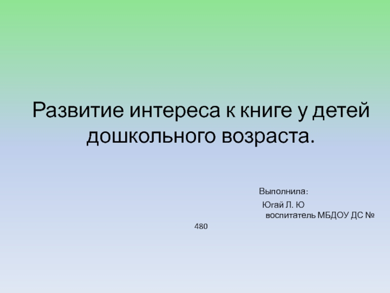 воспитатель МБДОУ ДС № 480