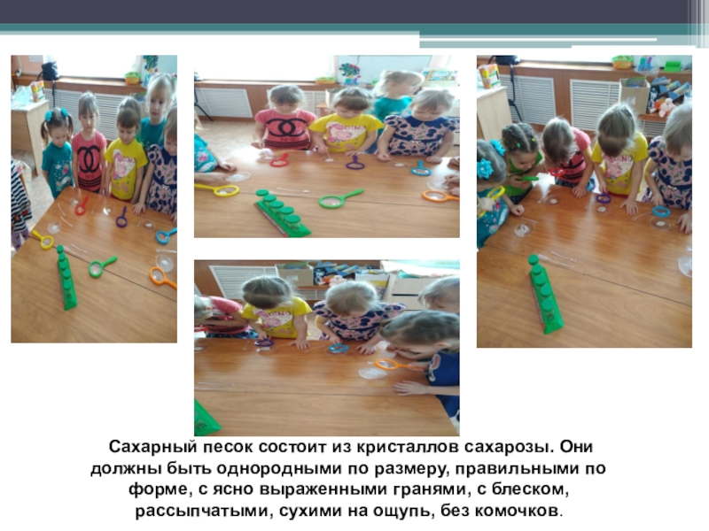 Слайд 10 Сахарный песок состоит из кристаллов сахарозы. Они должны быть однородными по