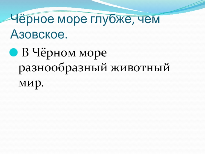 В Чёрном море разнообразный животный мир.Чёрное море глубже, чем Азовское.